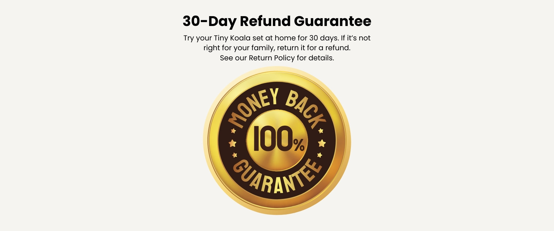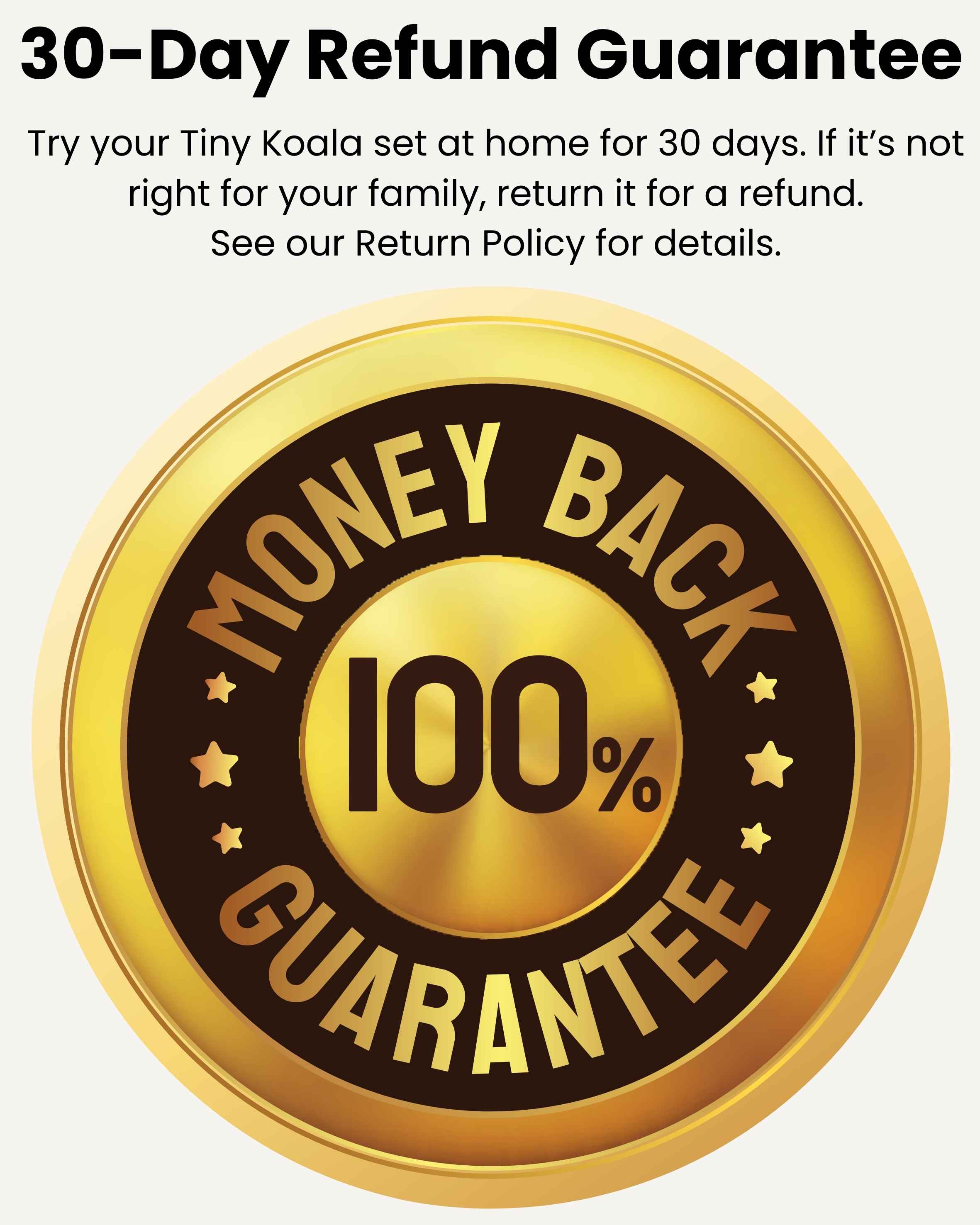 Try your Tiny Koala set at home for 30 days. If it’s not right for your family, return it for a refund.